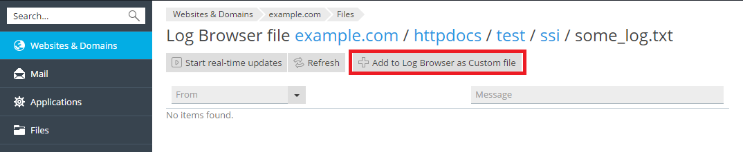 In addition, you can add any custom log file from you web site directory to track it in the Log Browser, as described below.