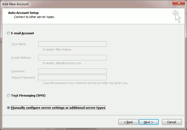 Select the “Manual setup or additional server types” option and then click Next.