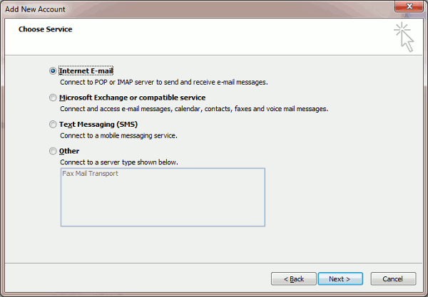 Select the “POP or IMAP” option and then click Next.