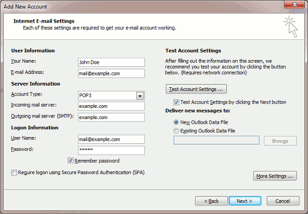 Require logon using Secure Password Authentication (SPA). Leave this option cleared.