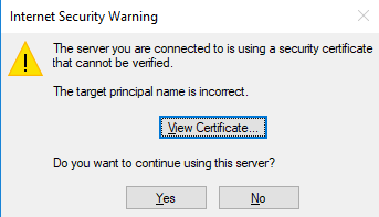 If the mail server is not secured with the same SSL/TLS certificate that secures the domain, you will see the following message: