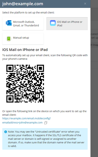 icon next to your email address.Open the provided link on the device on which you want to set up your mail account.
