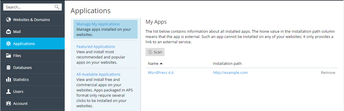 If WP Toolkit is installed on the server, users are advised to use it for centralized management of WordPress installations on the server. Learn more in the section WP Toolkit.