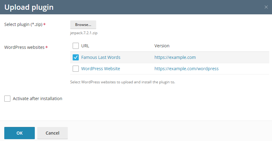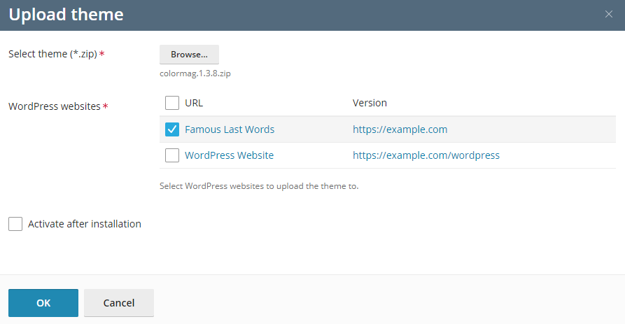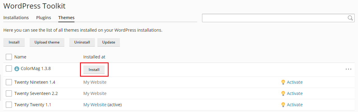 Unlike detaching, removal completely deletes a WordPress installation. You can remove any installation, no matter how it was installed: using WP Toolkit, through the Applications page, or manually. You can remove WordPress installations individually or multiple installations at a time.