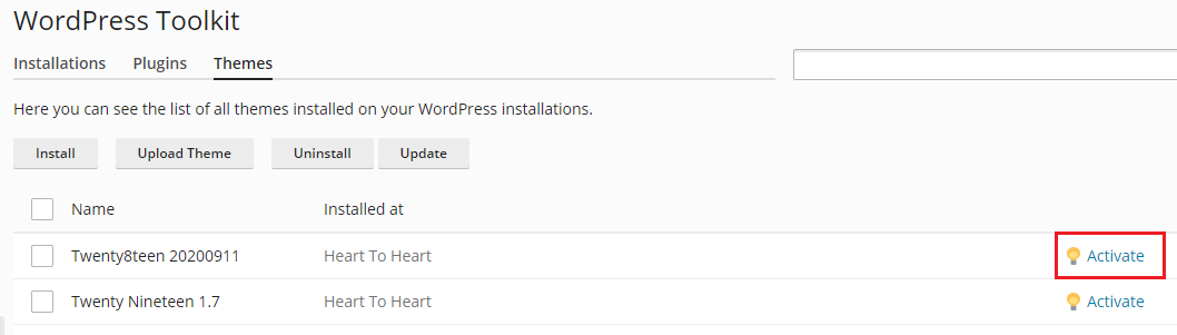Go to WordPress and choose the WordPress installation for which you want to disable the default