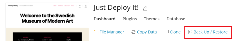 - “Back Up / Restore” to create a backup of your website and restore it if necessary.