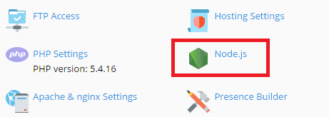 To set your application up, go to Websites & Domains and click Node.js. On this screen you can see a number of controls that will help you manage your Node.js application: